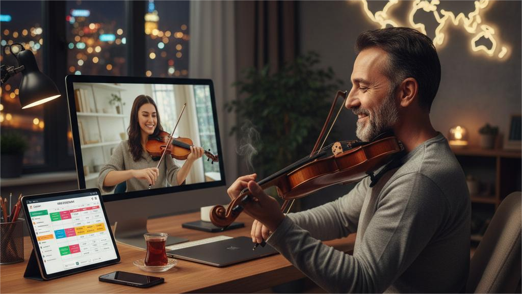 - Asenkron Destek: "Dersler haftada birdir ama müzik hayat boyu. İyi bir eğitmen, ders dışında da öğrencisinin gönderdiği kısa bir pratik videosuna geri bildirimde bulunarak veya bir sorusunu mesajla yanıtlayarak 'asenkron' destek sunar. Alacağınız özel keman dersi programının değeri bu küçük dokunuşlarla artar."